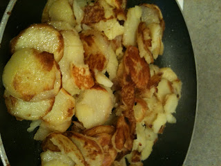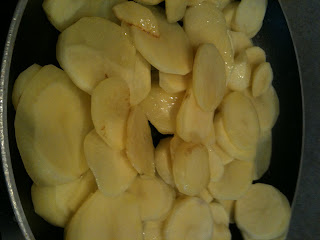 Pelate le patate, lavatele e tagliatele a fette rotonde ( non troppo spesse se non ci mettono troppo tempo a cuocere), mettetele in una padella abbastanza capiente in modo tale da non farle ammassare, al limite usate due padelle come faccio io.
