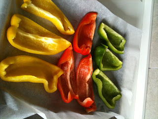 Questa volta ho usato sia peperoni rossi, sia gialli, sia verdi, visto che li avevo in casa e facevano colore ma il peperone giallo per me rimane il migliore perchè è il più dolce di tutti!