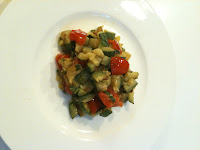 Lavate le zucchine e i pomodorini e tagliateli a quadratini piccoli.