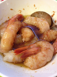 Mettete a marinare per qualche minuto i gamberi nel condimento e iniziate a scaldare bene una padella antiaderente.