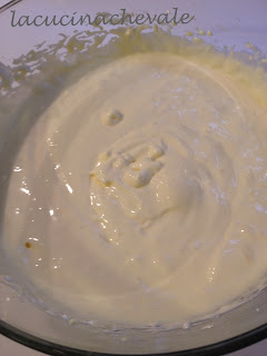 Dividete gli albumi dai tuorli e con le fruste elettriche o nel mixer montate i tuorli con lo zucchero molto bene, poi aggiungete il mascarpone e amalgamate bene.