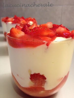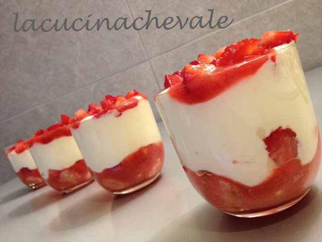 Ho trovato queste “pseudo” fragole all’ Esselunga e le ho prese e di corsa a casa a preparare. Lo so che chi si loda si imbroda, ma io mi voglio lo stesso “imbrodare” un po’, perché in esattamente 30 minuti ho tirato fuori questo dolce stupendo da servire in mono porzione, non lo avevo mai fatto prima e devo dire che sono stati tutti molto soddisfatti, sarà da replicare quando ci saranno delle fragole decenti.