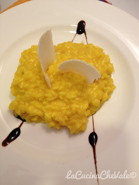 Non lo chiamo risotto alla milanese perché il vero risotto alla milanese vorrebbe l’utilizzo del midollo che in questa ricetta non c’è.