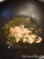 Fate un soffritto con 4 cucchiai di olio e lo scalogno tritato.