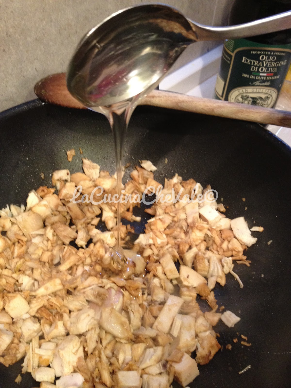 1 petto di pollo (io ho usato l’avanzo del pollo allo spiedo ma potete prendere 1 petto di pollo fresco)