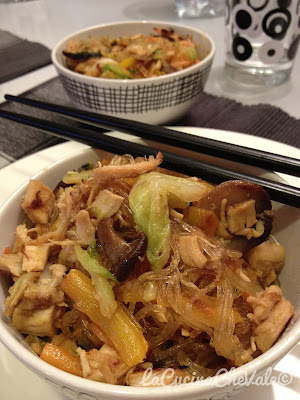 Non ci crederai ma anch'io spesso uso gli spaghetti di soia per *riciclare* gli avanzi di pollo. Ne vengono piatti interessanti e i *rognosetti* finiscono gli avanzi!! hihihi MAI sottovalutare le magie delle mamme!!!!