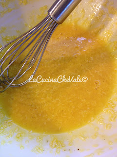 In una capiente ciotola sbattete l’uovo e il tuorlo con il parmigiano fino a renderlo una crema e aggiungete un pizzico di sale.
