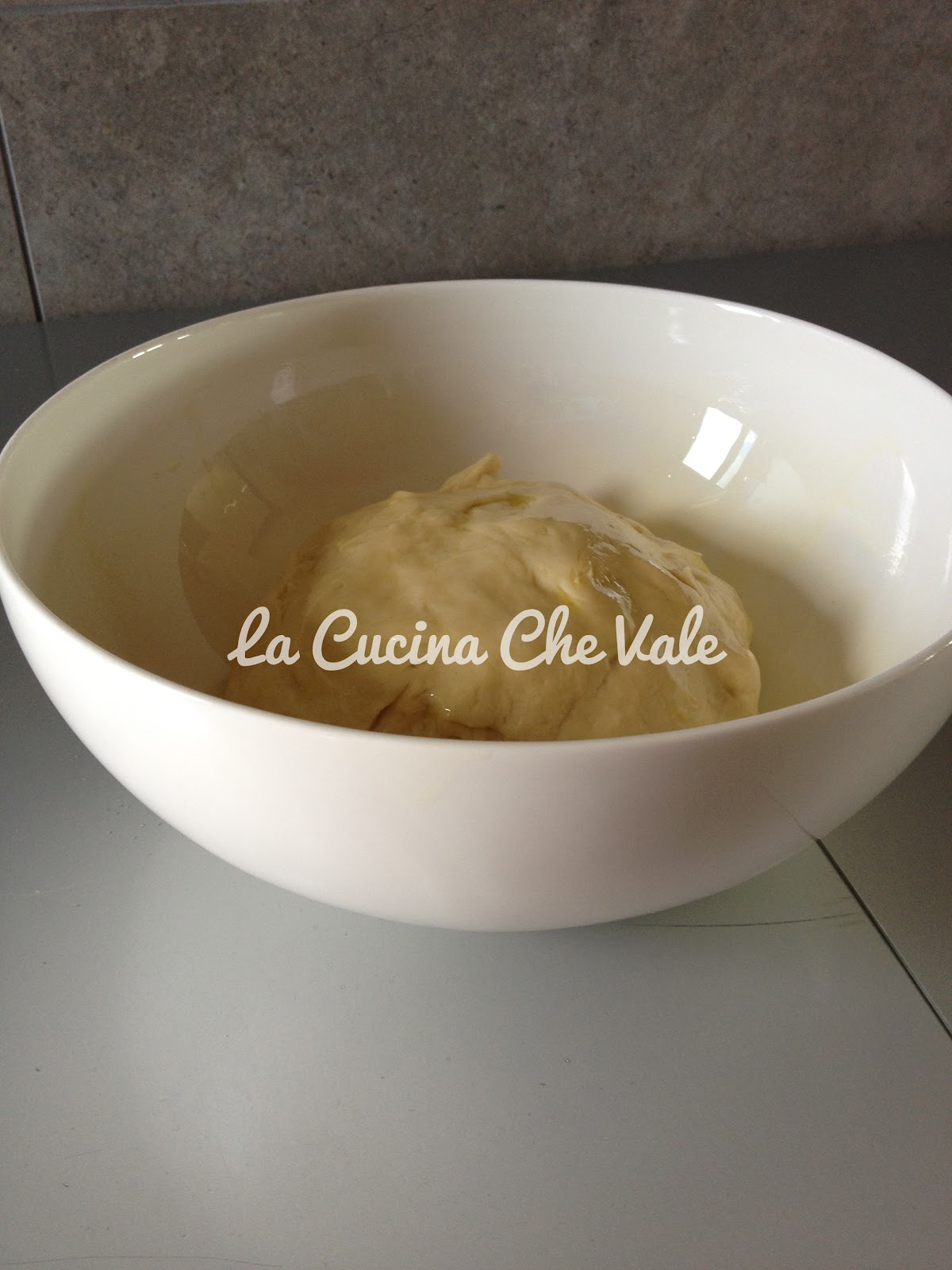 Formate una palla e mettetela in una bacinella unta d’olio, ungete anche la pasta e coprite con pellicola.