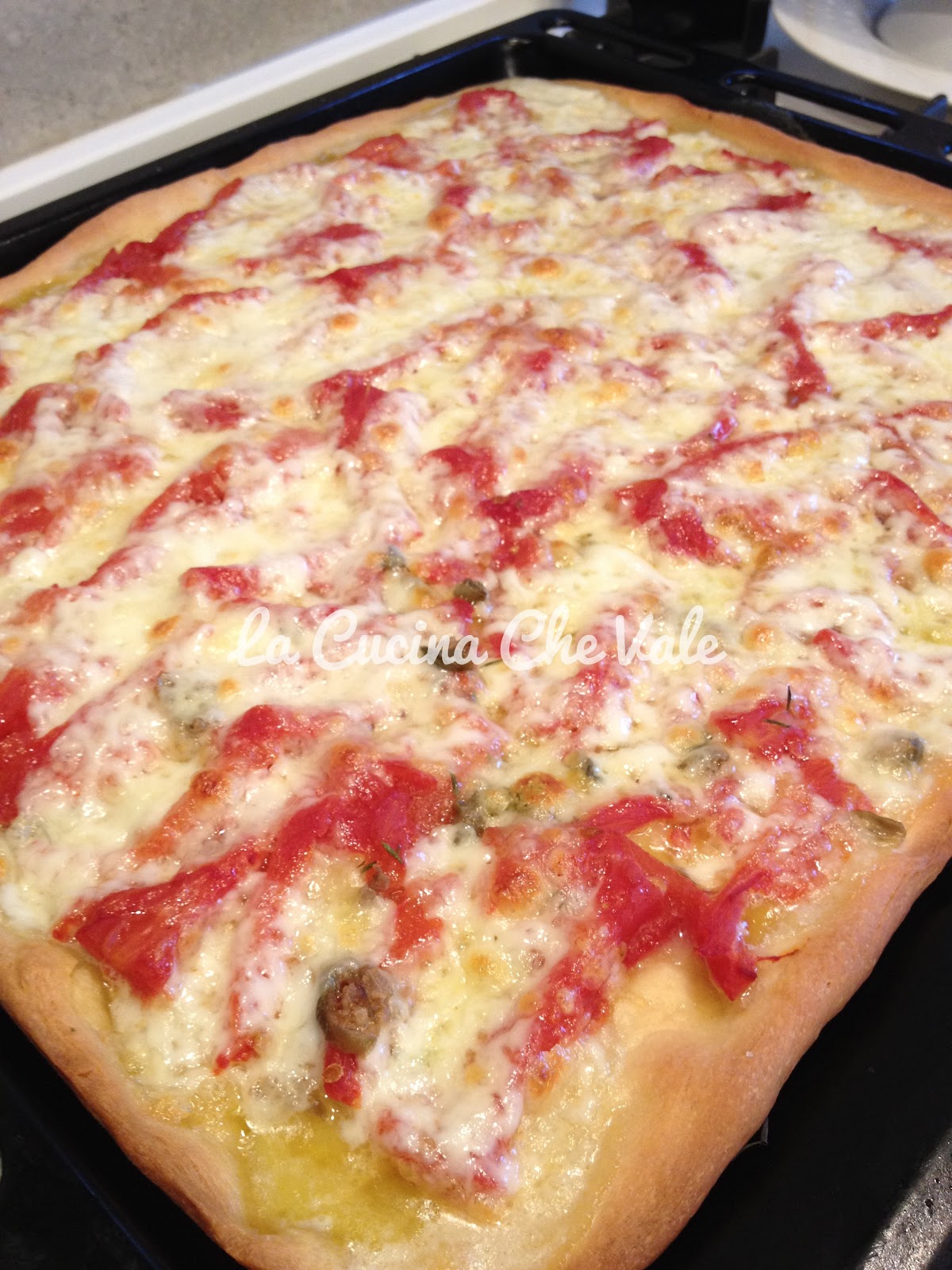 Nella foto vedete la mia fetta completa di origano fresco e capperi…in famiglia qualcuno schizzinoso c’è….sorvoliamo….
