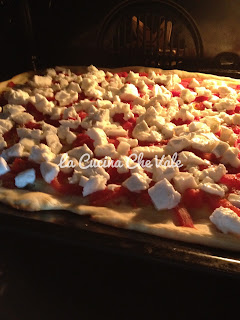 400gr di mozzarella vaccina a fettine (io ne uso di più e la taglio a pezzettini così da distribuirla uniformemente sulla pizza…questione di gusti)