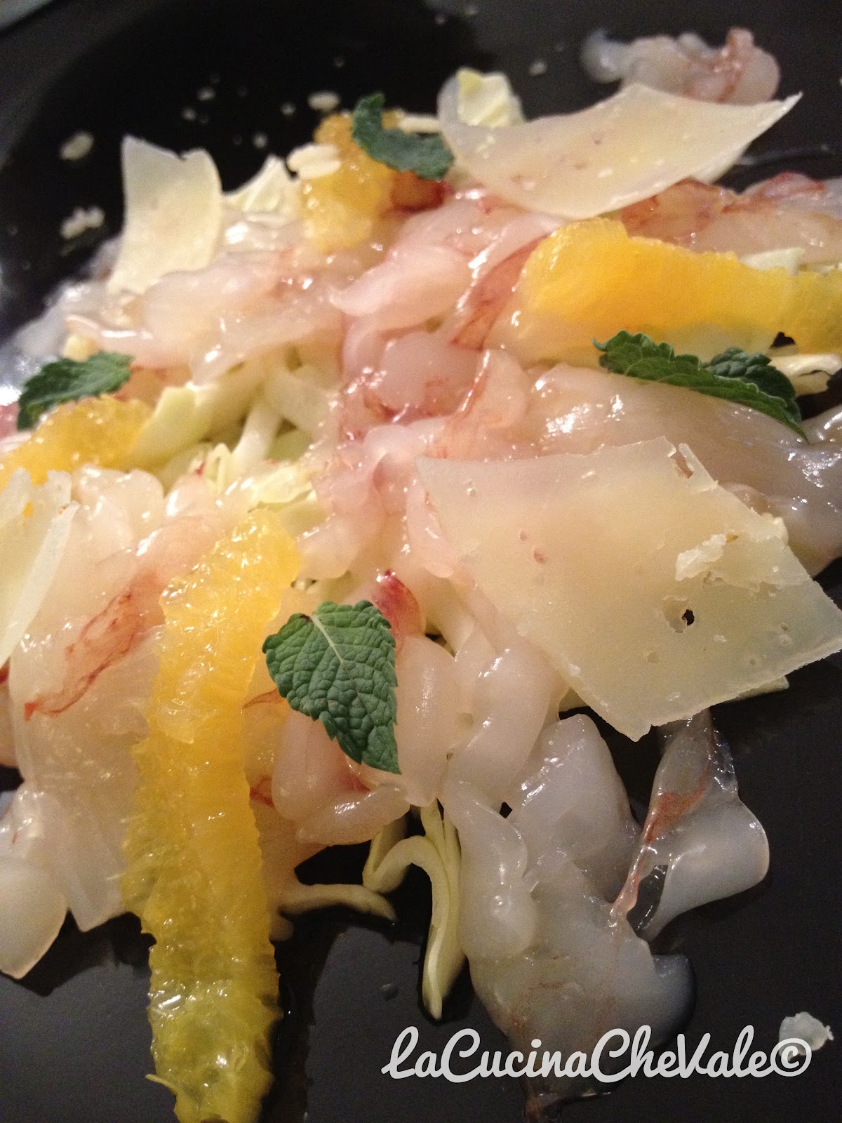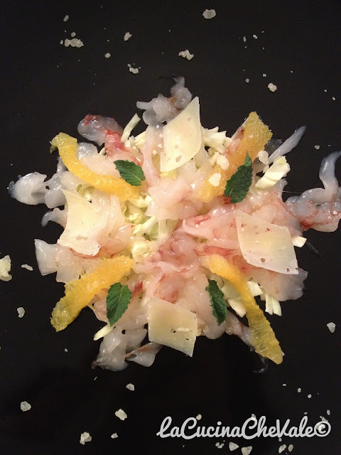 LA BATTUTA DI GAMBERI ROSSI, IL CRAUTO BIANCO, GLI AGRUMI E IL BAGOSS