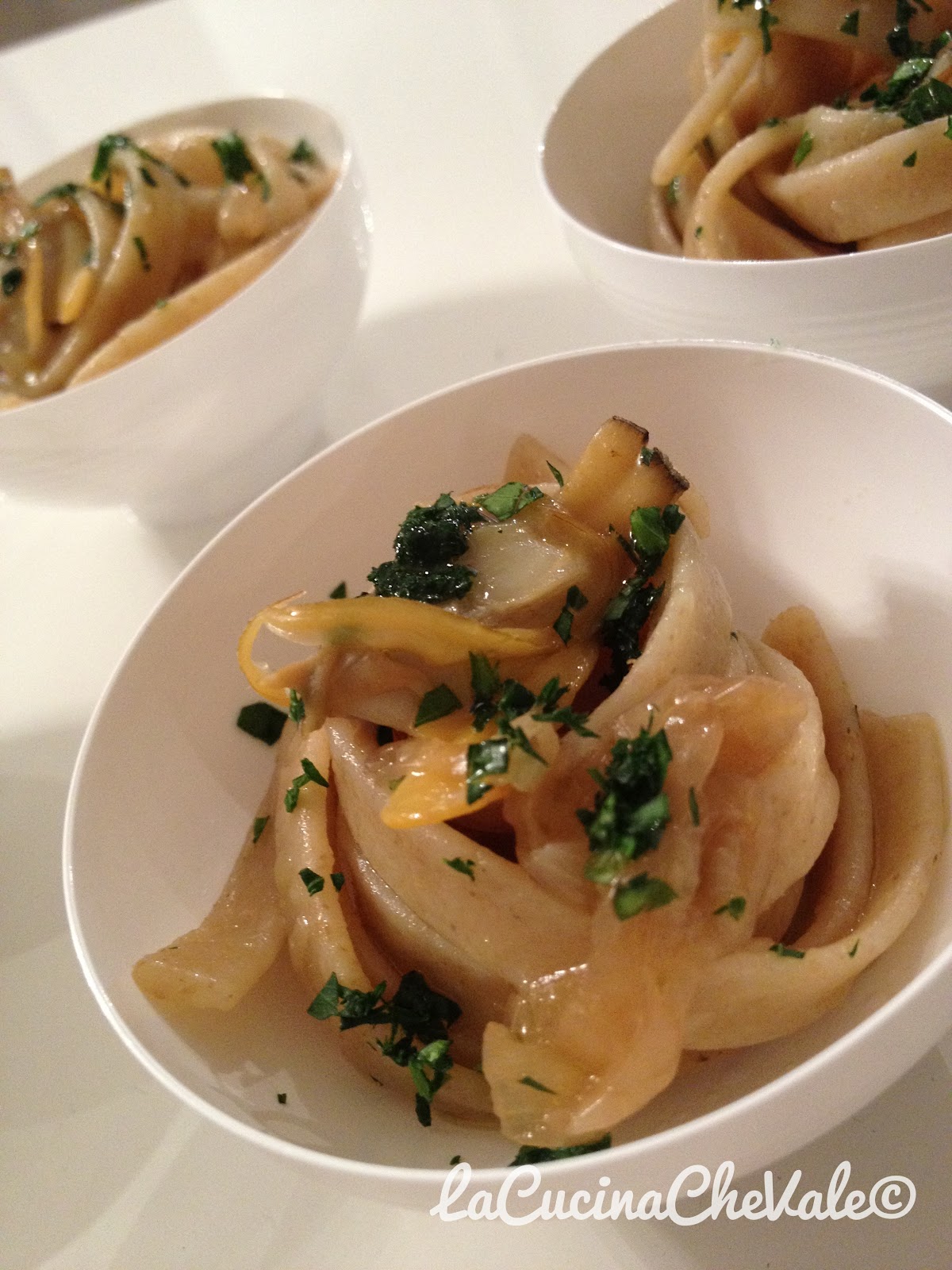 LE TAGLIATELLE INTEGRALI “Benedetto Cavalieri” CON LE VONGOLE VERACI, IL CIPOLLOTTO E IL TE’ AFFUMICATO