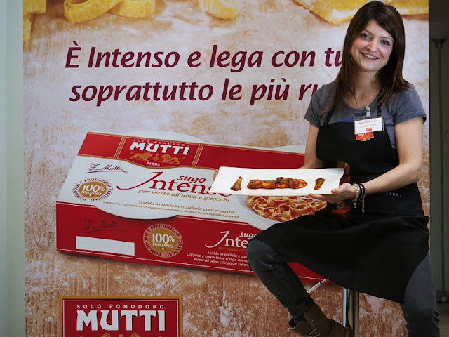 Vi voglio raccontare la mia avventura di qualche sabato fa, il tutto nasce da un’invito a partecipare ad un evento organizzato dalla Mutti. Qui ringrazio la mia adorata Emanuela di “Arricciaspiccia” che ha pensato a me. Mi contatta Valentina dell’agenzia di pr che si occupa dell’evento e mi chiede di pensare ad una ricetta che abbia come protagonista il sugo pronto della Mutti che si chiama Intenso perchè poi avrei dovuto realizzarlo il giorno dell’evento.