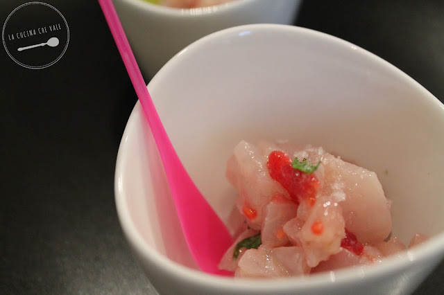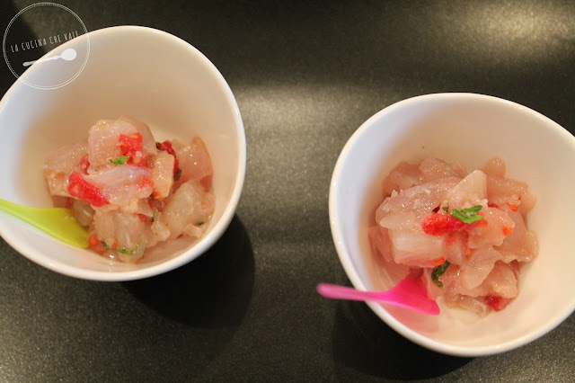 Ciao, non siamo delle amanti del pesce crudo, ma se ben preparato e soprattutto, se la ricetta ci incuriosisce, assaggiamo di tutto! Questa propostoa è davvero fresca e curiosa, e le ciotoline si presentano molto invitanti.