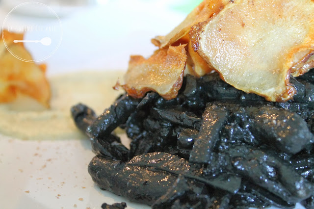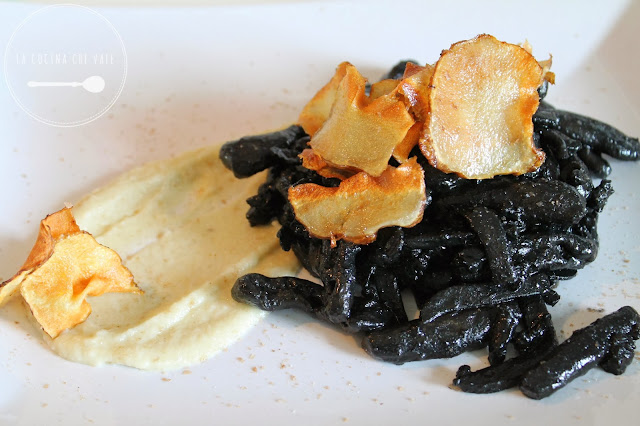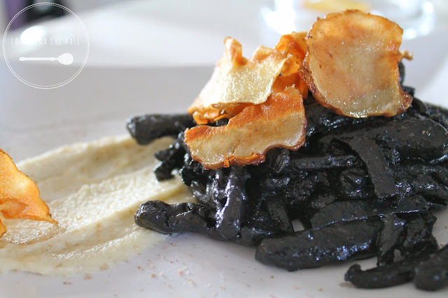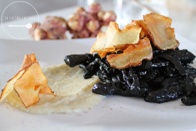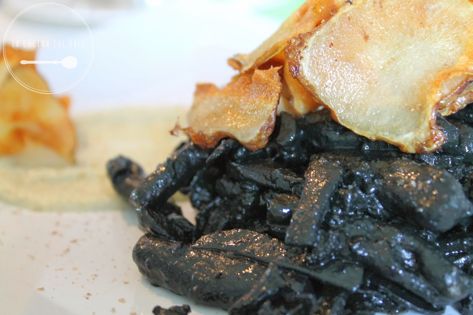 CAPUNTI CON SEPPIE NERE, CREMA DI TOPINAMBUR, CHIPS E SALE AFFUMICATO